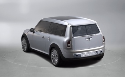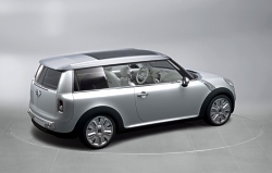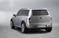 The rear section of the roof, finally, opens up just as conveniently for easy loading. Satellite Silver Metallic Paintwork and Neoprene Contour. MINI Concept Frankfurt stands out in its beautiful silver paintwork in the light, all points not directly in the beholder’s line of vision being kept in a more discreet grey. Soft, resilient neoprene is featured on the black side band so characteristic of the car, extending along the side-sills and wheel cutouts. Interior Design Characterised by “Floating Elements”. The “Floating Elements” concept consistently takes up and continues the car’s exterior statement within the interior: Right from the start when getting into the car, MINI Concept Frankfurt makes a generous and open impression enhanced by the completely free and accessible floor of the car, the foot area covered only by the central “insular element” of the centre console holding the “suspended” seats in position to provide a particularly generous foot area with a very advantageous impression of space. This impression is further accentuated by the free-hovering dashboard with its speedometer in the middle. It almost goes without saying that MINI Concept Frankfurt offers adequate space for four. The rear-seat backrests tilt down individually to form a flat surface flush with the floor of the luggage compartment, while the centre armrest lying between the two seats is integrated in the flat surface and offers additional storage space. Leather, Chrome and Aluminium as the Principal Materials. Throughout the interior, white leather underlines the impression of modern style and generous space, adding a strong touch of sophisticated class and stylish flair. The colour white emphasises the clear lines of MINI Concept Frankfurt, top-quality leather being used on different surfaces, the warm, natural surfaces being supplemented by cool-looking, metallic trim at all appropriate points. An aluminium-coated glass-fibre structure, for example, accentuates the door panels and linings inside the car, while a special carbon-fibre look highlights the foot area in combination with nylon texture carpeting adding a particular touch of sporting style. Forty-Five Years of the Mini Traveller The four-seater Mini with its extra-large luggage compartment was launched in September 1960 in the guise of the Austin Seven Countryman and the Morris Mini Traveller. The term “Traveller“ alone clearly proved that this special version of the Mini was intended from the start for an active target group. Sales of the Mini Traveller from 1960 to 1982 amounted to more than 400,000 units, including a special version of the Mini Clubman as of 1969. (September 12, 2005)