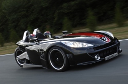 Built aerodynamically, the 20Cup presents a generous front-mounted air intake, with air evacuated laterally ahead of the front wheels. On the lower body sides, profiles serve as an aerodynamic diffuser to promote maximum bearing on the front axle. A new engine, the fruit of cooperation between the PSA Peugeot Citroën and BMW Group, is introduced by Peugeot for the first time at the prototype stage on this concept car: this turbo-charged 4-cylinder petrol engine with direct injection has sixteen valves and two overhead camshafts and is packed with ultra-modern technical features. On this version it develops a maximum power of 125 kW (more than 170 bhp for less than 500 kg!) and a maximum torque of 240 Nm. The sequential 6-speed manual gearbox has synchronizer dog teeth and is controlled by means of paddles under the steering wheel. For this high-performance vehicle, the front suspension is the dual wishbone type, with drop links and an adjustable anti-roll bar. The rear wheel is held by a single arm with a spring/damper assembly, equipped with a rocker arm to ensure variable flexibility. Of the three 18’’ alloy wheels, the one at the rear is the « cage » type with two removable wheel bodies.The front tyres are 210/65 R18s and the rear tyre is a 377/71 R18. 2 This two-seater car features rack and pinion steering and a « multifunction » steering wheel. It houses the control paddles of the piloted gearbox and, in its centre, a touch screen displaying a virtual readable image that remains horizontal regardless of the position of the steering wheel.This screen whose image is computed according to the steering wheel angle allows the driver for example to switch on the headlamps and can provide driving assistance during sporty use by showing transverse as well as longitudinal acceleration … It also contains all of the car’s operating indicators. The metallic black or opaque white body also has direct carbon surfaces and, on each side, an “historic” lion’s head that follows the curve of the front wing. A central red strip decorates the car’s body lengthwise. The cockpit interior features a black leather trim. September 12, 2005