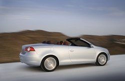 In addition, the CSC roof offers the general advantages of unimpeded suitability throughout the year and minimal driving noise when closed. It is also less appealing to vandals than a soft top. Of course, a roll-over protection system, which shoots out within a maximum of 0.25 seconds increases safety in critical situations. Very wide and powerful Dimensions: The convertible coupé is 1.79 metres wide, 4.41 metres long and 1.44 metres high. In relation to each other, these dimensions enhance the vehicle's dynamics. In comparison with its length and height, the vehicle's width lends the Eos a particularly powerful appearance. Its large track width (over 1.55 metres) not only looks good, it also contributes extensively towards the extraordinarily agile and safe handling characteristics exhibited by the Eos. The result is pure driving enjoyment regardless of whether the roof is up or down. Scheduled for launch in spring 2006 above the New Beetle convertible Market launch: The Eos is scheduled to be launched in Europe in spring 2006; the other continents are set to follow the same year. The car will open up a new sub-segment and will be positioned precisely between the A (Golf) and B class (Passat). In parallel, the New Beetle convertible, over 126,000 of which have been built and which underwent a facelift in 2005, will further extend its position as successor to the Golf convertible at the centre of the A class. Engines: Volkswagen makes specific use of technical synergies between its model series. Take the engines, for example: In detail, these encompass four petrol engines with outputs ranging from 85 kW / 115 PS, 110 kW / 150 PS and 147 kW / 200 PS to 184 kW / 250 PS plus a 103 kW / 140 PS TDI equipped with a diesel particulate filter as standard. Four-cylinder direct injection engines are fitted to provide outputs up to 147 kW, whilst the 184 kW variant derives its power from six cylinders. Sporty, elegant interior Passenger compartment: The interior design is also new. Whilst the functional and operating details (e.g. light, air conditioning, radio systems) are familiar from other models, many fundamental Eos elements are new developments. These include the cockpit, the door and side trim panels and the rear seat system. Volkswagen is additionally fitting electrically activated easy-entry seats for the first time: These "remember" the driver's and front passenger's longitudinal seating positions, and return to these – once the rear passengers have entered or exited the vehicle – at the push of a button. When the roof is open, a volume of 205 litres is available; when closed, 380 litres of stowage space are on offer. As standard, a power latching system closes the boot lid the last few millimetres. A through-loading aperture is additionally integrated into the rear bench seat. One equipment version, many equipment details Equipment: The Eos will be launched in just one high-quality equipment version. Permanent details fitted as standard will include ESP, safety-optimised front headrests, front airbags and specially developed side head-thorax airbags; 16" alloy wheels (V6: 17"), air conditioning system (Climatic / V6: Climatronic)), fog lights, electric window lifters, ambient lighting, leather-covered steering wheel*, gear lever knob* and handbrake lever* plus sports seats* (* = standard as of 103 kW, optional extras for 85 kW). Optionally, innovative features such as a Dynaudio sound system with ten-channel amplifier, ten loudspeakers and 600 W output power or bi-xenon headlights with dynamic and static cornering lights will be available for the Eos. September 12, 2005