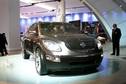 Enclave wears a Cocoa Metallic color, with the lower section of the vehicle featuring the low-gloss, chip-resistant finish expected on a luxury SUV. The unique exterior color is accented with selective chrome trim, including the door handles and the trim that encircles the side windows. Streamlined roof rack rails also are chrome, with a design that flows into the body like the other sheet metal cues. Craftsmanship is evidenced in the dramatic, jewel-like headlamp and taillamp housings, as well as the streamlined look of the roof rack rails and the visual heft of the twin, polished stainless steel exhaust outlets. Buick’s technical sophistication is evidenced in the lamps themselves: The headlamps feature HID (High-Intensity Discharge) lighting technology and are integrated with GM’s Adaptive Forward Lighting System, which enables the lamps to turn with the direction of the front wheels. The jewel-look taillamps are complemented by an LED-lit high-mounted stop lamp that is designed into the upper edge of the backlight. “It is as technically sophisticated as it is beautiful,” said Folden. “Enclave is the luxury SUV complement to Buick’s lineup of finely crafted luxury cars.” Engaging interior environment Enclave’s interior environment is designed to create a personalized experience for all passengers. Six individual, leather seats – located in three seating rows – are surrounded with thoughtful amenities and luxurious detail. The large, bronze-tinted skylight extends between the front-row seats and third-row seats, warming the interior and enhancing the feeling of openness. “Enclave has a rich, sumptuous interior that, like the exterior, reflects Buick’s precision and craftsmanship with an acknowledgement of its legacy – it’s a ‘heritage forward’ design,” said Michael Burton, interior design director. “Curvaceous forms, luxurious materials and soft, inviting colors make it a warm, comfortable environment.” The curved and round elements that permeate the Enclave’s cabin hark back to the style of classic Buicks, including the air vents, door panels and instrument panel. Brushed aluminum trim on these components, as well as features such as the pedals and gauge cluster surround reflect contemporary style and reinforce the vehicle’s craftsmanship. Aluminum-trim strips also accent the carpet of the storage compartment. These elements complement a rich-looking Cocoa and Light Cashmere two-tone interior color theme, embellished with camphor burl wood. Superior craftsmanship also is prominent in the contrasting stitching on the seats and leather-wrapped headliners. Lighting, too, was carefully selected to enhance the luxury feel while conveying warmth. A “halo” light extends from the perimeter of the skylight, while lapis blue lighting fills the footwells when the doors are opened. Tiffany-style lamps are located at the second- and third-row seats and accessory lamps are integrated as an overhead component for the second row. A Buick logo located on the inside of the power liftgate is illuminated, too. “There is a romantic, engaging feel inside the Enclave,” said Burton. “It’s also a personal environment, like that of an executive jet, with amenities that allow passengers to be more interactive during a drive.” Inventive interior amenities The front seat seatbacks have wood-embellished, fold-down trays for the second-row passengers, as well as leather, coach-style storage satchels. The three seating rows are divided by a unique console that runs from the instrument panel to the third-row seats. Each row’s console unit includes climate control switches, audio/entertainment controls, cupholders, a storage bin and jeweled, Tiffany-style analog clock. A matching clock is mounted at the top-center of the instrument panel. A rich wood look of the console contrasts with the Cashmere-and-Cocoa color theme. From the console controls, passengers also can select from a wide array of entertainment options delivered through four DVD screens. The front-seat passenger can flip down the front visor, which is embedded with technology that allows it to be both a mirror and a DVD screen, while third-row passengers can view a screen that flips up from their console. There also is a clever, movable second-row overhead vanity with two flip-down screens. The vanity and its flip-down screens – one for the left and right seating positions – can me moved fore and aft on an electronically controlled track. The vanity can be moved completely rearward for an unimpeded view out of the skylight. Each screen in the vehicle is capable of playing a different audio/video selection, giving the Enclave the capability of playing four DVDs simultaneously. Also, the dash-mounted navigation radio is capable of playing DVDs when the vehicle is parked. Enclave offers its passengers the ultimate in personalized, in-vehicle entertainment. Power and efficiency Enclave rides on a 119-inch wheelbase and is powered by a 3.6L high-feature V-6 with dual-overhead camshafts and variable valve timing. Enclave’s powerful V-6 offers one of the category’s most fuel-efficient options. The engine is rated at 270 horsepower (201 kw) and is backed by a six-speed automatic transmission. This luxury SUV also has all-wheel drive and four-wheel independent suspension. January 8, 2006