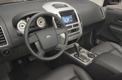 Most crossovers have been designed to closely resemble traditional SUVs. Edge heads to a new, unexplored part of the CUV market with a bold, modern, uniquely American design. Modern Design with a Dramatic Edge "Edge is not an off-road adventure vehicle, and it doesn’t look like one," says Peter Horbury, executive director, North America Design. "The inspiration for the Edge is contemporary design and an adventurous state of mind." Edge’s visual promise of dynamic prowess begins with its bold front end. Its distinctive three-bar chromed grille builds on the great look of the Ford Fusion. An aggressively raked windshield and fast-sloping back window with high-mounted rear spoiler accentuate the feeling of motion. Quad-beam headlamps and a "powerdome" hood accentuate the purposeful front-end look. Each wheel is planted at an extreme corner, giving Edge a powerful, yet graceful stance. The raised beltline emphasizes strong, sculpted shoulders formed around sharp wheel arches. Matte black lower front and rear fascias and side rocker panels emphasize Edge’s sporty character. Edge’s modern design flows into the interior, evident in the instrument panel and distinctive center stack. The center stack design incorporates two 9- by 2-inch vertical vents that bracket the audio and climate-control switches. All-leather seating surfaces feature contrasting stitching inspired by the fashion industry and a hit with Fusion customers. More than 41 models occupy the CUV segment today, but only three compete in a niche subsegment dominated by foreign competition. The 2007 Ford Edge crossover will be the only domestic product in this sub-segment later this year. Edge also is big on details. A 20-ounce-cup holder is included in each front-door map pocket, along with juice box holders in the rear door pockets, two super-size-cup holders in the center console and two in the rear armrest. Edge offers comfortable seating for five or can accommodate items up to 8 feet long with the rear seats and front passenger seat folded flat. The 60/40 reclining split second row folds to provide a level load floor for carrying equipment in the large cargo area. Edge can transport items as long as 8 feet inside with the front passenger seat folded down. Each rear seat can be folded manually using an industry-first single-hand release or automatically with an available EasyFold™ electro-mechanical remote release accessible from the rear cargo area. Edge’s available panoramic Vista Roof™ opens up a whole world of possibilities. The large glass moon roof provides a grand view of the sky above and can open for a sense of freedom that accentuates Edge’s sporting nature. The roof features a large 27.3- by 29.4-inch forward panel that offers tilt and slide opening, and a 15.75- by 31.3-inch fixed rear glass panel. A one-touch-open switch provides open-air touring. Close the forward roof, and the enormous skylights allow natural light to flood the cabin, while protecting the cabin from the elements. When preferred, the twin power-operated cloth shades can be closed simultaneously to block glare. Edge’s modern car-based foundation facilitates its excellent driving character. The front suspension features MacPherson struts and an isolated subframe, firmly attached in six locations. To further smooth out the ride, hydro-bushings are used. The four-link independent rear suspension uses stamped steel control blades for precise suspension tuning. The rear shocks are mounted as far outboard as possible in the vehicle and behind the wheel center to improve ride and handling. Edge comes standard with four-wheel-disc anti-lock brakes. Edge’s all-new 3.5-liter V-6 features a strong, lightweight, die-cast aluminum block and lightweight 4-valve-per-cylinder heads for smooth operation at high rpm. A 10.3:1 compression ratio and close-coupled catalysts will help it meet stringent ultra-low emission vehicle (ULEV) II regulations. The all-new 6-speed automatic transmission uses a wide 6.04:1 gear ratio to deliver good fuel economy and performance. Short first and second gears provide impressive launch and acceleration, while the tall overdrive gears deliver 7 percent better fuel economy than a 4-speed automatic. Edge’s available intelligent all-wheel-drive (AWD) system was tuned with an emphasis on performance while offering confident all-weather driving. By constantly monitoring and predicting traction, the system delivers torque to all four wheels, even before the wheels begin to slip. An active on-demand coupler can deliver the precise amount of torque to the rear wheels. Paired with available AdvanceTrac® traction control, intelligent AWD can transfer torque front-to-rear and side-to-side. Safety Begins with Accidents Avoided Edge customers will find peace of mind in Ford’s comprehensive approach to safety, including available active safety technology and comprehensive passive safety features. "Edge’s confident handling helps drivers avoid accidents, especially when paired with the industry-exclusive AdvanceTrac® with Roll Stability Control (RSC®)," says Stephen Kozak, Ford Safety chief engineer. "Should an accident occur, Edge features a comprehensive package of passive safety features to help provide enhanced safety performance." Ford Edge goes on sale in the fourth quarter of 2006. It will be manufactured at Ford’s Oakville Assembly Complex in Ontario, Canada. January 08, 2006