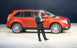 Bold, American design: Ford Edge stands out in fast-growing CUV market Performance-plus: Edge’s new 3.5-liter V-6 delivers 250 horsepower and is mated to a 6-speed automatic for performance and fuel efficiency Innovation: MP3-player jack, console laptop storage, panoramic Vista Roof™ and advanced safety features, including Ford’s industry-leading Advance Trac® with Roll Stability Control® (RSC)