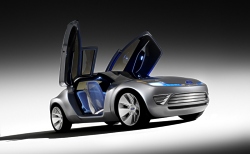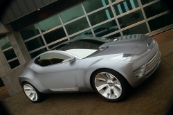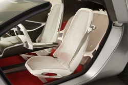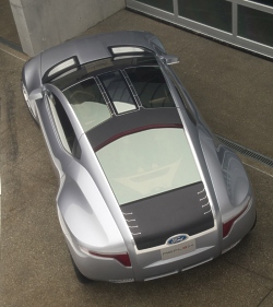 Reflex is set off with Ford's three-bar grille – made of high-strength anodized extruded aluminum, which is hand polished to a matte finish. The concept's shoulder line flows upward to the B-pillar and back down into the wheel arch. Reverse butterfly doors aid vehicle ingress and egress. The vehicle's low-voltage circuitry is exposed beneath the glass roof and rear hatch, giving a clever nod to accessible technology – even as a fashion statement. The roof also features self-powered solar fans that cool the car when parked. Reflex's aggressive 20-inch wheels are polished alloy. The large diameter, narrow width and unique Michelin tire design provide low-roll resistance for improved fuel economy. Kid-Inspired Interior Lightweight, space-efficient materials define the interior with its innovative 2+1 backseat configuration. Mesh seat covers are transparent and sheer, offering maximum airflow for comfort and style. Unexpected colors – red and robotic white – create a sense of warmth and accessibility. The interior of the Ford Reflex concept features lightweight inner seat frames wrapped in mesh. The white mesh fabric is offset with warm red carpeting. The cockpit comes alive with keyless activation. At the touch of a button, the instrument cluster controls appear in a cool blue hue as organic light-emitting diodes (LEDs) switch on. Located in the center console, touch-screen technology helps reduce driver distraction. Shift paddles that control the 6-speed semiautomatic transmission are tucked behind the steering wheel. The back seat offers the ultimate in small-car flexibility. A second-row "love seat" can accommodate two children or one adult. With a push of a button, a divider bar raises through the seat bottom, transforming one seat into two. Rear-seat passengers also have the luxury of watching their favorite movie on two small flat-screen monitors mounted to the lower portion of the front seatbacks. Like the front seats, the rear seats feature mesh wrapped around a lightweight inner frame. Advanced Safety in a Small Package Ford’s experimental inflatable safety belts provide a broader contact area with the potential to spread impact forces across the chest, further reducing the chances of injury. The small, tubular-shaped inflatable bag deploys inside the shoulder belt in the event of a crash. Reflex takes safety innovation a major step forward. Advanced safety technologies include inflatable safety belts and BeltMinder™ for backseat passengers. The inflatable safety belt helps reduce injury risk to second-row occupants. Ford's patented BeltMinder™ technology alerts the driver when second-row occupants are not buckled up. Understanding that the responsibilities of a parent don't end once the car starts, Reflex designers added a strategically placed "baby cam" in the headliner. From this vantage point, the driver can see streaming video images of the rear-seat occupants. Sporty and Green Reflex features an advanced diesel-electric hybrid propulsion system that harnesses diesel, electric and solar power. This combination of power can deliver maximum fuel economy – up to 65 mpg – without compromising performance. The concept features an electric motor on the rear axle in addition to the hybrid propulsion system on the front axle. The rear motor provides all-wheel-drive capability, improved driving dynamics and the fuel economy benefits of a full hybrid vehicle. The Ford Reflex concept features solar panels in the headlamps and taillamps that recharge the hybrid-electric battery pack, and solar panels in the roof that power electric fans to cool the interior while the vehicle is parked. Reflex's energy is stored in a new-generation lithium-ion battery pack, using the same technology found in cell phones. Ford was the first manufacturer to produce an electric vehicle using this type of battery system when it introduced the electric Ford Ka research vehicle in 2000. Also contributing to Reflex's power and performance are unique headlamps and taillamps that integrate solar panels. The Ford-patented battery-charging lighting system improves fuel economy by using the sun's power to charge the on-board batteries, while capturing and reusing the daylight at night. January 08, 2006