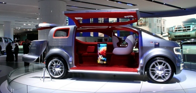 For Airstream, these demographic changes are meaningful as well. RV ownership is highest among retirement-age consumers, and by the end of the decade, 50- to 64-year-old consumers will tally 57 million – a 38 percent increase versus 2000, according to University of Michigan studies. And the number of RV-owning households is expected to grow to 8.5 million during the same period. Growing Ford’s crossover share means breaking through the competitive and fragmenting segment, and the company is leveraging bold designs to win customers. Ford’s crossover lineup already features the functional Freestyle, newly launched agile and modern Edge and, in time, will include a more refined full-size crossover based on the Fairlane concept. Ford designers wanted to push further into the future and tapped inspirations including Airstream’s iconic designs and the optimistic future Stanley Kubrick created and captured in his 1960s cult film 2001: A Space Odyssey. These inspirations are evident – inside and out. The concept’s bold, futuristic front-end explores a new look for Ford, encapsulating the single-surface grille and headlamps into the same graphic. Each of the concept’s bold orange-trimmed window graphics is a unique shape. Its doors are asymmetric as well, allowing for easy loading of passengers and cargo. In addition to the driver’s side hatch, the passenger side features a power clamshell door that runs two-thirds the length of the vehicle. A three-door hatch finishes the rear of the crossover. The futuristic theme and modern form language of the exterior carries through to the concept’s interior. The Ford Airstream Concept features a floating instrument panel with flush-mounted, touch-sensitive controls and a multi-function single gauge display provides the driver all primary information. A Sharp® dual-view screen centrally mounted on the instrument panel provides a camera view and secondary driver-oriented information, while allowing the front-seat passenger to view DVDs and post mobile blogs. The driver and front-seat passenger will navigate in style in modern, pod-shaped swiveling captain’s chairs that also rotate so they can easily socialize. In the rear, lounge-like seating is sculptural, creating a continuous cocoon-like environment wrapped in bold red B&B Italia fabric. The focal point of the rear seating area is a 360-degree screen for entertainment and games. The unique screen also creates ambient mood settings, including a modern lava lamp and virtual fire, as well as a live camera feed. The new HySeries Drive plug-in hydrogen fuel cell featured in the Ford Airstream Concept is more than a concept. This powertrain is already on the road and driving in a Ford Edge prototype. Ford scientists and engineers created this vehicle with partial funding from the United States Department of Energy. The HySeries Drive delivers the combined city/highway equivalent fuel economy of 41 miles per gallon. In this application, the fuel cell’s sole function is to recharge the vehicle’s lithium-ion battery pack as needed. This allows it to work like a portable generator, instead of an engine, as had been the case in previous Ford fuel cell vehicles. The new fuel cell, supplied by Ford partner Ballard, operates in a steady state, allowing a significantly smaller, less expensive fuel cell and drastically improving the durability of the fuel cell. With this system, the fuel cell delivers the power needed to recharge the lithium-ion batteries, rather than to be the primary power source to drive the wheels, as in a typical fuel cell-powered vehicle. In pure electric mode, the Ford Airstream Concept can travel 25 miles before the fuel cell begins operating to recharge the vehicle’s 336-volt lithium-ion battery pack. With the hydrogen-powered fuel cell, the range increases another 280 miles for a total of 305 miles. Safety belts remain the most important safety technology in vehicles. Ford is researching several new safety belt designs, including four-point safety belts found in the front seats of the Ford Airstream Concept. “Inside, outside and under the hood, the Ford Airstream Concept speaks to the future,” Mays said. “Ford is looking out onto the horizon and imbuing crossovers with emotion, made even more powerful by our association with Airstream.” January 07, 2007