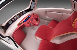 Front and rear lamps feature a clear, clean-looking design. And the exterior even features oval recesses both front and rear that are covered with soft materials – comfy places to sit outside when Pivo is parked. You find the same thoughtfulness in a soft, organic interior that extends from the center of the revolving egg-shaped cabin, which is the Pivo's most unique feature. Because the platform has a longitudinally symmetrical design, the driver's perception of the car's corners does not change even when the cabin is rotated 180 degrees. Advanced technologies enhance driving experience Pivo is powered by a Nissan-developed high-performance Compact Lithium-ion Battery and Nissan’s unique Super Motor. The result is zero emissions. Beyond this outstanding environmental performance, the electric powertrain enables a highly compact body. Designers made the most of Nissan’s Compact Lithium-ion Battery – which, being flat, require much less space than conventional cylindrical cells – to achieve remarkable packaging efficiency. Even more space and weight savings are achieved with Nissan’s Super Motor. One Super Motor on each axle delivers power to two shafts, each of which can be controlled independently. This allows efficient distribution of torque to all four wheels with two (not four) electric motors. Pivo's unique revolving cabin is just one of the myriad possibilities enabled by Nissan’s multiple drive-by-wire technologies. These include steer-by-wire, brake-by-wire and shift-by-wire systems that replace mechanical linkages with electronic signals. By eliminating the need for mechanical links between cabin and chassis, designers were able to create the unique pivoting passenger compartment. Drive-by-wire technologies afford even more flexibility inside the cabin as the layout of steering, braking and other functions is no longer governed by mechanical linkages. Even better, drive-by-wire systems mean less weight and fewer mechanical parts. See-through pillars and Nissan’s Around View Monitor helps to reduce dangerous blind spots. Cameras mounted on the outside of each A-pillar feed an accurate image of the surroundings to screens mounted on the inside of the pillar. The net effect is pillars that become virtual windows. The Around View Monitor meanwhile generates a 360-degree view of the car’s surroundings on a dashboard monitor. Cameras positioned front and rear on both sides of the car capture images of the surroundings. An innovative image processing technique synthesizes these images into a single bird’s-eye view. A dash-mounted infrared (IR) commander allows drivers to operate the navigation system and audio system without taking an eye off the road or fumbling around for controls. It’s a new type of human-machine interface (HMI) that uses an infrared camera and Nissan’s "Magic 4" concept. You simply point fingers at the infared commander to choose from any of four items on a menu. If you want item number three, hold up three fingers. Or, for example, if you want the music louder, just motion upwards with your hand. Thanks to Nissan's Horizontal Display there is even less need to take an eye off the road – because information is displayed along the bottom of the windshield. This system, first featured in the Serenity concept shown at the Tokyo Motor Show two years ago, displays information in the manner of movie subtitles. This innovative display system supports Nissan's future telematics interface concept. For example, in “City Browsing mode,” the system can display information transmitted live from nearby locations. What’s that building up ahead? City Browsing labels it. What does the future have in store? Pivo points the way. Oct 20, 2005