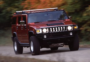 Two option packages will be offered with the H2. Priced at $2,575, the Lux Series includes AM/FM radio with 6-disc CD changer, heated leather front seats, chrome appearance package, tubular assist steps, and custom carpet floor mats. The Adventure Series, priced at $2,215, includes an air suspension package, brush guard, first aid kit, tool kit and portable lamp, 6-disc CD changer, roof rack crossbars, and custom carpet floor mats. Additional vehicle options include wrap around brush grille guard, off-road roof spotlamps, off-road grille guard spotlamps, tubular tail lamp covers, hard cargo carrier, removable U-steps, tubular assist steps, and custom carpet floor mats and cargo mat, all of which are available at the time of purchase. A three-year, 36,000-mile bumper-to-bumper limited warranty is standard and includes HUMMER 24-hour Roadside Assistance. H2 will be sold exclusively in the United States and Canada. Seven colors including pewter metallic, black, yellow, sage green metallic, white, sunset orange metallic, and red metallic will be available. (May 23, 2002) [Homepage] [
