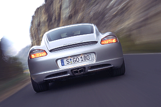 The Porsche Sports Chrono Package is tailored to the driver wishing to use the potential of the Cayman S in every respect. Offering even more powerful engine control maps and management strategies, the Sports Chrono Package pushes the car's extreme limits to the utmost. The visual symbol bearing clear testimony to the Sports Chrono Package is the analogue/digital stopwatch on the instrument panel allowing an absolutely precise comparison of driving dynamics down to the last hundredth of a second. And on a race track like the Northern Circuit of Nürburgring, the supreme performance ensured by the Sports Chorno Package means even quicker lap times, the Cayman S equipped with Sports Chrono lapping Nürburgring an impressive three seconds faster than the same car in "regular" trim. Sporting suspension for supreme agility Compared with the Boxster, the chassis and suspension of the new Cayman S comes with even firmer and more sporting springs, dampers, and anti-roll bars. This particular set-up, combined with the neutrality of the mid-engined concept, the extremely stiff body and performance-oriented 18-inch tyres, ensures supreme agility on the road in virtually every situation. And a high standard of active safety is virtually built in from the start, Porsche Stability Management (PSM) starring as a regular feature in the Cayman S. A very special option on the suspension: The active damper system A further highlight comes as an optional extra: Porsche Active Suspension Management or PASM for short. This enables the driver, at the touch of a button, to choose either a sporting but comfortable or an ultra-sporting and dynamic damper setting, improving either the car's already high standard of long-distance comfort or the supreme quality of driving dynamics. Reliable brakes free of fading - and with ceramic brake discs as an option Cross-drilled, inner-vented brake discs measuring 318 millimetres (12.5") in diameter at the front and 299 millimetres (11.8") at the rear ensure exemplary stopping power in the Cayman S. Porsche Ceramic Composite Brakes (PCCB) available as an option come with even larger brake discs measuring 350 millimetres or 13.8" in diameter and are made of a special ceramic material for even lighter weight. The big advantages in this case are an ultra-high and consistent frictional coefficient as well as wear reduced to an absolute minimum in everyday motoring. Six airbags for supreme all-round protection The Cayman S naturally offers the supreme standard of passive safety so typical and characteristic of every Porsche. Full-size frontal airbags for the driver and front passenger, just as one example, ensure superior safety in a head-on collision, while a thorax and a head airbag provide the same kind of protection in a collision from the side. The brand name for this unique safety system is POSIP (Porsche Side Impact Protection) further supplemented by side impact protectors in the doors. 410 litres (14.35 cu ft) luggage capacity in two luggage compartments