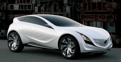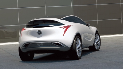 The panel lines on the sides represent swift and elegant crosswinds, further accentuating the dynamic and stylish body design. The bonnet itself is lower in the centre than on the sides, which emphasizes the car’s powerful front fenders that accommodate large, 22-inch wheels. The wheel design continues the crosswinds motif with each spoke carefully twisted and larger outside than in the centre, providing a strong sense of movement. The five-point grille is integrated into the body to create a clean and light image which, together with the flared front lower sides contributes to excellent aerodynamic characteristics. The aerodynamics are further improved by making the air intakes as small as possible. The side sill panels and rear combination light covers also help to control the wind flow and reduce drag even further. Interior – SUV Functionality with Driving Safety Mazda Kazamai is not only a pure expression of speed and power, it also accommodates up to four passengers with compact SUV comfort and functionality. It was designed to fulfil various driver and vehicle interfaces so as to support the driver in enjoying safe and stressfree driving, with well considered human machine interface visibility and operation cockpit. This is one of Mazda’s important areas of the Sustainable Zoom-Zoom plan. Weight reduction and superior aerodynamic performance are core technologies to improve both driving pleasure and environment performance, especially fuel economy. Mazda will further focus on these crucial factors in order to achieve the goals of the Sustainable Zoom- Zoom plan. Despite its powerful exterior look, the Mazda Kazamai concept’s aerodynamic performance is achieved through a flat floor panel, a rear diffuser, and a low roof line. The aim was to make the Kazamai’s aerodynamics more than 10% better than other vehicles in its class. When Mazda set about reducing the bodyweight, they leveraged CAE applications and focused on four major areas: collision safety, handling, NVH, and strength. At the same time, lightweight materials and new processing/joining technologies were put to effective use. Aluminium or aluminium-alloy is used for the bonnet, chassis and engine block. The designers aimed to make it 100 kilograms lighter than similar models by employing plastics for the panels, fenders and the engine cover. These features also contribute to advanced handling and improved fuel economy and CO2 emissions. Next-Generation Powertrain – 30 Percent Improvement in Fuel Consumption The ideal match for the Mazda Kazamai concept would be a next-generation 2.0-litre directinjection petrol engine, which Mazda engineers are currently developing. This engine delivers a balance of sporty driving – especially in a compact car like the Mazda Kazamai – with good environmental performance. Mazda Kazamai will feature a DISI* engine based on the current Mazda CX-7, with advanced technologies to minimize energy loss and vastly improved thermal efficiency. Mazda’s next generation 2.0-litre DISI petrol engine also has combustion control technology and variable valve control that deliver strong torque throughout the revrange for excellent engine response as well as superior fuel economy. A next-generation catalyst also ensures superior emissions performance. *DISI: Direct Injection Spark Ignition This is coupled to a lightweight and next-generation compact six-speed automatic transmission that is highly responsive and delivers the direct feel of a manual transmission, and four-wheel drive for superior traction. In combination with Kazamai’s next-generation aerodynamics and its lightweight body outlined above, this powertrain would deliver an estimated 30 percent improvement in fuel consumption and emissions (versus the current MZR 2.0-litre petrol) – without compromising driving pleasure. Advanced Safety and Security Features Mazda Kazamai is not only lightweight, fuel-efficient and fun to drive, it is also designed with safety as a key element. Its advanced body shell is a product of a new body structure programme currently being refined at Mazda with a lightweight structure that provides high levels of crash safety. Mazda Kazamai also has a long list of active safety features including roll stability control, blind spot monitoring to assist lane change, a pre-crash safety system and advanced dynamic stability control (DSC) to support the driver. And to meet future pedestrian safety requirements, it has soft plastic fenders and a shock-cone aluminium bonnet that is very efficient in absorbing impact energy. Also onboard the Mazda Kazamai is a personal security system. This advanced system monitors the area around and inside the car, and has an automatic alert system which informs the driver in the event of an emergency to help to protect both the owner and occupants. Photos: MAzda (August 22, 2008)