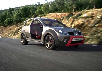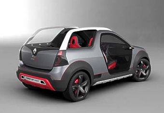 Sand’up Concept is transformed easily into a coupé by manually attaching the hard-top roof using solid anchor points. The result is a harmonious whole, with particular attention having been paid to blending the design of the hard top and the vehicle body. Renault Design America Latina created numerous innovations to make life easier for drivers and passengers. At the rear, the tail lights use LEDs instead of conventional bulbs to boost nighttime visibility. On the sides, traditional rearview mirrors have been replaced by two small cameras. The images they capture are displayed on a trapezoidal LCD screen mounted on the dashboard alongside a GPS. For easier vehicle access, the doors open gull-wing style using an electro-hydraulic system similar to that on Laguna Coupé Concept. The doors are made entirely of transparent glass, giving driver and passengers remarkable lateral vision and flooding the cabin with light. Versatility remains the strong point of Sand’up Concept inside. The bucket seats at the front slide back and forth on rails. Two small suitcases fitted into the backs of the front seats can be removed and used as overnight bags. Photos: Renault (Oct. 27, 2008)