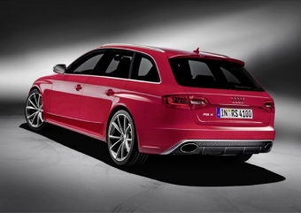The self-locking crown-gear center differential works together with the torque vectoring system, which acts on all four wheels. If the load on the inside wheel is reduced too much while the car is being driven dynamically, the torque vectoring system brakes it slightly before unintended slip can occur. Audi offers the sport differential, which uses two superposition stages to actively distribute the power between the rear wheels, as an option. Aluminum in abundance: the chassis The chassis of the Audi RS 4 Avant is a very complex design. Many components of the five-link front suspension and the self-tracking trapezoidal-link rear suspension are made of aluminum. The new speed-dependent power steering is a highly efficient electromechanical system with a direct steering ratio for highly precise road feel. It helps the driver stay on course by making slight steering corrections when braking on surfaces with different amounts of grip. The taut RS setup lowers the body by 20 millimeters (0.79 in) compared with the Audi A4 Avant. New, polished 19-inch, ten-spoke forged aluminum wheels shod with 265/35-series tires are standard. Audi also offers 20-inch wheels with 265/30-series tires. These are available in a new, polished, titanium-look, five-V-spoke design plus two additional variants in the five-arm rotor design. Mounted behind the large wheels are internally vented wave disc brakes measuring 365 millimeters (14.37 in) in diameter up front. The steel friction rings with their wave-like outer contour are perforated and connected to the aluminum brake caps via pins. This concept reduces tensions, quickly dissipates heat and prevents transmission of temperature peaks. The new shape of the friction rings shaves a total of roughly three kilograms (6.61 lb) off the unsprung weight. The calipers are painted high-gloss black; the front calipers have eight pistons each and sport RS logos. The ESP stabilization system has a Sport mode and can be fully deactivated. For the front axle, Audi offers the option of 380 millimeter (14.96 in) carbon fiber ceramic discs and six-piston calipers in anthracite gray. The ceramic brakes are especially lightweight, robust and durable. The Audi drive select driving dynamics system is among the standard equipment for the RS 4 Avant. With it, the driver can switch between three modes – comfort, auto and dynamic – to determine the characteristics of the steering, the seven-speed S tronic and the throttle valve. Audi drive select can even vary the sound of the exhaust system, double-declutching when downshifting in dynamic mode. If the car is equipped with an Audi navigation system, a largely driver-configurable custom mode is also available. In addition to the sport differential, another component available for Audi drive select is dynamic steering. It varies its steering ratio by nearly 100 percent depending on the speed driven and automatically countersteers slightly at the cornering limit for even more precise and stable handling. Another particularly dynamic damping technology available as an option from Audi is the sport suspension plus with dynamic ride control (DRC). Oil lines and a central valve connect diagonally opposed pairs of shock absorbers. During fast cornering, the system boosts the stabilization of the front outside wheel, for example. The damping characteristic of the sport suspension plus is variable, with a choice of three settings available via Audi drive select. The Audi RS 4 Avant is 20 millimeters (0.79 in) longer and 24 millimeters (0.94 in) wider than the A4 Avant, but 20 millimeters (0.79 in) lower. A choice of eight colors is available: one solid and one metallic finish, four pearl-effect colors and the two specially pigmented crystal-effect colors, Prism Silver and Panther Black. The extensively clad underbody integrates air vents for the seven-speed S tronic and the front brakes. Audi offers exclusive high-grade leather packages for all seating options, including a design package with honeycomb quilting for the RS 4 bucket seats. Rounding out the list of optional equipment is a broad range of state-of-the-art driver assistance and communication systems, including the Bluetooth online car phone that connects the RS 4 Avant with the Internet. Options for the luggage compartment, which offers up to 1,430 liters (50.50 cu ft) of cargo space, include a rail system with load securing set and a power hatch. Delivery of the Audi RS 4 Avant is scheduled to begin in fall 2012 at a base price of €76,600 in Germany. Photos: Audi (Feb 15, 2012)