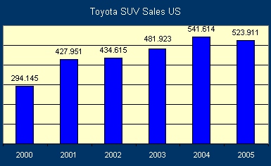 Camry became the best-selling car in America for the fourth year in a row and eighth time in the past nine years. Lexus retained its crown as the best-selling luxury brand in America for the sixth consecutive year, selling a total of 302,895 units in 2005. With overall sales of 156,485 units, Scion was a significant contributor to the record sales year. Get data in EXCEL format (EXCEL 2003) Historical figures (incl. Lexus) also contained in the EXCEL file: