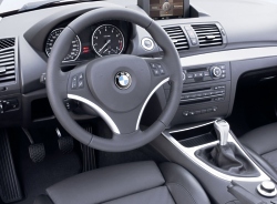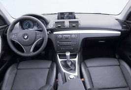 The individual sections within the L-shaped rear taillights give the vehicle a lower, sportier look. Horizontal lights integrated in the rear light clusters offer a homogeneous lighting effect with the help of light-emitting diodes (LEDs). This light design, as found on other BMW models, makes the BMW 1 Series Coupe stand out at night. Also, the Adaptive Brakelights operating in two stages in relation to brake application force are yet another feature typical of BMW, with the additional benefit of extra safety on the road. The standard Adaptive Xenon headlights (optional on the 128i) complete with integrated Cornering Lights make driving in the dark safer than ever. The daytime headlight function in typical BMW style with two corona rings on each headlight unit enhances the perception of the car under normal and “murky” light conditions. Luxurious interior The innovative interior design incorporates high-quality and sophisticated trim elements with luxurious upholstery and color choices. A 60/40 split rear seat is standard. The control console for the entertainment and air conditioning functions is integrated smoothly and harmoniously into the dashboard through its soft radii and flowing surfaces. The controller featured in the iDrive system with the optional Navigation system is integrated in the center console, again following BMW’s characteristic philosophy. Galvanized pearl gloss surfaces adorn the interior door handles, the glove compartment handle, the radio’s rotary knobs, the knobs of the automatic air conditioning system, the iDrive Controller, and the ornamental trim strips featured on the sports steering wheel. The BMW 1 Series Coupe is available with a choice of two upholstery options—sporty and comfortable Leatherette or rich Boston Leather. Boston Leather upholstery adds further style to the high-quality impression of the interior. And as a practical feature, map pockets are integrated in the lower part of the doors. The optional Sport Package includes sports buckets seats with enhanced side support and are finished in highly distinctive leatherette materials or Boston leather. Enhanced iDrive and integration of an external MP3 player BMW’s iDrive is included with the optional navigation system. It enables the driver to control all secondary and comfort functions such as communication, air conditioning, entertainment and navigation functions easily and conveniently. This latest version of iDrive is equipped with six Programmable Memory Keys that allow the driver to program functions that are used particularly often such as navigation destinations, radio stations or specific telephone numbers. Touch-sensative sensors on these buttons preview the function on the iDrive screen before the button is depressed. This allows the driver to choose the stored function safely and conveniently, keeping his or her eyes on the road in the process. A wide choice of audio and communication are also available, never before seen in the compact performance market. These features include SIRIUS satellite radio, HD radio, Premium Sound system and Bluetooth interface. For simple and straightforward connection of an MP3 player, an Auxiliary input jack is standard, and a USB port for direct control of an Apple iPod or iPhone media player is available as an option. High-tech suspension In typical BMW style, the new BMW 1 Series Coupe transmits the power of the engine to the rear wheels. This design concept and configuration – engine at the front, drive wheels at the rear – guarantees optimum traction, good weight distribution front-to-rear, excellent directional stability, and predictable handling. The new 1 Series Coupe has a sophisticated suspension system with an aluminium double-pivot front suspension and a five-link fully independent rear suspension in lightweight steel. BMW’s Dynamic Stability Control (DSC) also includes a Dynamic Traction Control (DTC) function that provides electronic intervention to prevent loss of vehicle control, but at a higher threshold before activation. This allows the driver to experience more spirited driving on dry roads and offers more flexibility when driving in more challenging conditions such as in the snow. If the driver desires, both DSC and DTC can be disabled entirely. Active Steering, a variable ratio steering system exclusive to BMW, is available as an option. The DSC system on the 135i Coupe is designed specifically for performance-oriented driving. For instance, the accelerator pedal has a quicker response rate and electronic rear brake management is used to simulate a differential lock for stronger acceleration in turns. The rear differential on the 1 Series comes from a new generation of final drives optimized for running smoothness. Featuring double-helical ball bearings for the first time, the differential runs at an even lower operating temperature reached more quickly than before thanks to the reduction of fluid required in the differential. The front suspension on the BMW 1 Series is also built to a standard quite unique to its competitive group. The double-pivot spring and strut front suspension with its anti-roll bar, is made largely of aluminium and offers an optimum combination of stiffness and low weight. The very stable track control arms and thrust rods, as well as exact wheel guidance, make an important contribution to the car’s driving dynamics. High safety standards No less than six airbags come standard within the new BMW 1 Series Coupe for optimum protection of the car’s occupants. The advanced frontal airbags are activated in stages in relation to impact severity while the side airbags integrated into the sides of the front seat backrests reduce the risk of injury at chest and hip levels in side impact situations. HPS (Head Protection System) side curtain airbags fitted in the roof lining protect both the occupants on the front seats and the passengers at the rear. The new BMW 1 Series Coupe also comes with cras