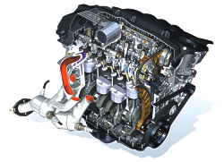 This is done by a lever positioned between the camshaft and the intake valves, its distance from the camshaft being adjusted infinitely by an additional eccentric shaft operated by an electric motor. Depending on the position of the VALVETRONIC control system, the lever converts the cam contour into a larger or smaller valve lift, whatever may be required.