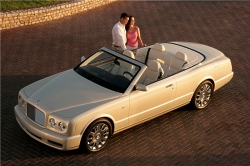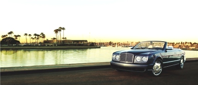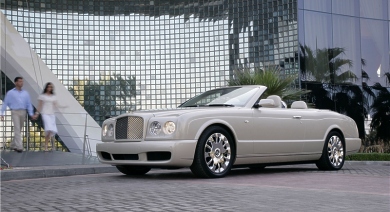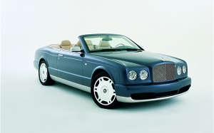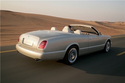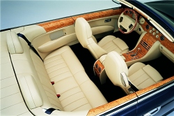 The twin-turbocharged V8 engine, double-wishbone suspension and extremely rigid body structure of the Arnage provide a state-of-the-art basis for the new Azure. It is powered by a 450bhp (336Kw) version of the Arnage’s 6.75-litre twin-turbocharged intercooled V8 engine and produces 875Nm (645lb ft) of torque. The specification of the production version of the Azure is virtually unchanged from the original L.A. show car. The principle change is the introduction of high technology, lightweight, carbon fibre, under-floor cross braces that contribute to the exceptional levels of body stiffness, benefiting refinement, ride and handling. In addition, the chrome trimmed bumpers and sills of the show car are now painted in body colour with a delicate chrome trim that runs the length of the car, enhancing the flowing lines of the Azure body. |