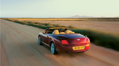 The front seats have a new sculpted rear which produces an additional 30mm (1.2 inches) of knee-space in the rear. In the rear of the Continental GTC the centre console finishes with a veneered panel just behind the front armrests, therefore leaving the rear seats as an uninterrupted surface of leather hide, optimising the maximum space for the proportion of the car. As with all Bentley interior design, great attention to detail has been paid to the jewellery in the car, using a mix of polished and satin metals, such as you might find in modern watch design. Between the rear seats there is access to allow skis to be passed through from the boot area. The boot can also hold two golf bags, and of course plenty of luggage, making this a truly practical convertible. The inner roof of the Continental GTC is trimmed with a very high quality fabric that looks like the slung headliner in the original coachbuilt Bentleys. Customers have a choice of eight headlining colours enabling them to create a luxuriously light feel or a darker, more sporting ambience. Exterior features and technology The Continental GTC combines the finest Bentley traditions and craftsmanship with highly advanced automotive technology. Wherever modern solutions have been introduced on the car, however, these are never to the detriment of driving enjoyment or passenger comfort. At Bentley we don’t believe in overloading our cars, or our customers, with technology that they don’t need or may never use. On the Continental GTC every feature content or safety system must make a case for itself before being added. What’s more, the full features list is almost entirely standard, meaning customers won’t be forced to trawl through an exhaustive options list at additional cost. The convertible roof with rollover protection The second target for the engineering team was to ensure that the car’s folding roof was as refined as possible while still fitting into a small stowage area behind the rear seats. Folding flat in just 25 seconds is a remarkable feat in itself for this complex, seven-bow, fabric roof. But just as impressive is its state-of-the-art three layer construction. The Continental GTC’s roof has superb acoustic-damping fabrics, with a thicker, more padded outer layer than is used in any other convertible. The ‘sandwich’ is also a thick, insulating layer while the third inner layer is made from the highest quality cloth material which echoes the roof lining on Bentleys of yesteryear. Not only are the materials the best available, but the construction and packaging of the roof are second to none. Its designers were keen that absolutely all working parts would be covered, which means that whether you are inside the car as the roof is in operation or watching from the outside, not one piece of the mechanism will be visible. The roof comes with a heated glass rear window and also an interior rooflamp in the headlining. It can be operated after pulling away from standstill at speeds up to 30km/h (20mph). To ensure occupant safety, an advanced rollover protection system is installed beneath the rear headrests. If the car’s onboard computer senses that the car is about to roll during an accident, two reinforced steel hoops are deployed in a split second, thereby working in conjunction with the exceptionally strong windshield frame to protect passengers in the front and rear seats. New rear suspension To cater for the Continental GTC’s sleek design and packaging requirements, a new rear suspension has been created. The convertible shares the same suspension system as its coupé equivalent - a four-link arrangement at the front and a trapezoidal multi-link rear axle with computer-controlled air springs and fully variable, electronically controlled shock absorbers in place of conventional coils. On previous Continental models, however, the air damper unit was mounted to the upper lever of the rear suspension. On the convertible, the entire damper has been lowered by 210mm and is now mounted to a brand new lower trapezoidal link with an advanced aluminium-cast mounting point that provides the strength and stiffness to hold the damper in place. With a slightly altered weight distribution and a need to ensure the convertible is as luxurious and comfortable as it is sporting and dynamic, the Continental GTC has revised air spring pistons and damper hydraulics at the front and rear. As with the other Continentals in the range, the Continental GTC will allow the driver to select from four pre-programmed suspension settings ranging from Comfort through to Sport. These settings automatically adjust the computer-controlled shock absorbers to ensure that the car reacts in the right way to your driving style. At speeds above 152mph (245km/h), the suspension automatically lowers the car to ensure that aerodynamic lift is kept to a minimum, benefitting high-speed stability. Powertrain The Continental GTC is powered by Bentley’s magnificent W12 twin-turbocharged 6.0-litre engine, which will propel the car to 60mph in 4.8 seconds and on to a top speed of 195mph (312km/h). This awe-inspiring piece of engineering is identical to the unit used in the coupé and four-door versions of the Continental and delivers phenomenal power (552bhp/411kW) as well as that legendary wave of torque (479lb ft/650Nm) from low revs that is the hallmark of every Bentley. The 12-cylinder block has a 48-valve head with four camshafts that operate using continually variable valve-timing. Power is transmitted via a seven-bearing crankshaft to the car’s six-speed automatic transmission. To ensure compliance stringent emissions regulations, the twin turbochargers are designed with a unique bypass valve that automatically sends exhaust gases to heat the catalytic converters when the car is started from cold. This valve then operates as the turbocharger wastegate at all other times. The Borg-Warner turbochargers are also the ideal solution for producing th
