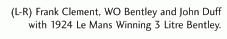 A late May day in 1923 and a 3-litre Bentley leaves London for the coast. On board are two drivers, one mechanic and a few spares. Spool 79 years and one fortnight to an early June day. As you read this another Bentley is on its way to exactly the same place: Le Mans. This time, of course, it will be cradled gently from within its purpose built transporter and, as far as spares are concerned, there will be at least enough to build an entirely new car. But the aim, then as now, is the same: to win Le Mans. Of course, 79 years ago, the Le Mans 24-hours was not regarded as the world's greatest motor-race. It was a little local gathering, attracting - with just one notable exception - an entirely domestic field. Nor was that exception a works machine, but the private transport of London Bentley distributor, John Duff. Sure, his teammate, Frank Clement was a Bentley employee and the only professional racing driver the works ever hired, but WO himself wanted no part in it. He dismissed idea of racing twice around the clock as quite mad and was convinced that none of the cars would last.