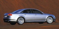 Four areas that are linked by a single idea: the idea of ease. In other words, ease in the sense of design harmony, ease of acceleration, the ease with which it can be handled - the driver of an A8 does not have the impression of handling a large saloon car - and, finally, ease of operation. Its design gives visual expression to the unique character of the new A8. Expansive, strikingly arched surfaces are framed by precisely plotted lines. The silhouette of flat front and short body overhangs, plus the highly contoured rear end, provides a clear indication of its dynamic potential. Two powerful, spontaneous V8 engines, a 4.2 litre version with an output of 246 kW (335 bhp) and a 3.7 litre version developing 206 kW (280 bhp), will be available at the market launch in autumn 2002. One new feature in the A8 is the 6-speed automatic transmission with tiptronic function, which constantly assures an optimum transition between the various speed stages. As an option, it is also possible to change gear via shift paddles mounted on the steering wheel; the ergonomic advantages of this concept have already been demonstrated on Audi's Le Mans champion model, the R8.