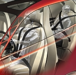 SCC thus points the way to a new dimension in research and development into car safety. The Volvo Safety Concept Car is a vision of the developments in safety that car buyers can enjoy in the future. It is also evidence that Volvo Cars and Ford Motor Company are at the very leading edge in the development of technology for safer driving. "With the quick pace of technological development, we are constantly gaining access to smaller yet more powerful computers, new sensors and so on. Volvo's approach is to utilise the breakthroughs in an intelligent and sensible way. We combine advanced electronics with new materials and new mechanical design solutions to create customer benefits. One example of this is the Volvo SCC and its unique enhanced all-round visibility," says Hans Gustavsson, head of purchasing and product development at Volvo Cars. Helen Petrauskas, safety manager at the Ford Motor Company, continues: "More than 90 percent of all important information to the driver comes in the form of visual input through the car's windows and windscreen. If we improve the quality of this visual information, we will also improve the driver's ability to make the right decisions in difficult situations, thus avoiding collisions." Built for the eye That is why the forward-thinking Volvo Safety Concept Car is built for the eye. Not merely in terms of aesthetic appearances and lines pleasing to the eye, but rather because the car has been designed around the driver's eye to ensure better vision and visibility. When the driver gets into the seat, a sensor identifies the location of his or her eye. The seat then automatically adjusts to suit the position of the eye so that the driver gains the best possible field of vision. Once this is done, the floor, pedals, steering wheel and centre console including the gear lever all move to ensure that all the controls are within convenient reach. The driver thus enjoys the best overview over what is happening both outside the car and in the instrument panel. Number one in safety The Volvo SCC is the result of close cooperation between Volvo Cars (appointed as the Ford's Center of Excellence for Safety) and the parent company, the Ford Motor Company. The car, which was designed at the Volvo Monitoring and Concept Center in California, displays advances in several research and development projects in the fields of safety and security. It clearly highlights the spearhead competence and the resources that the company has at its command. "It is our goal to remain the world leaders in the field of automotive safety. With the SCC, we're showing that we have the resources to do just that," continues Ford's Helen Petrauskas. Curved B-posts The Volvo SCC has a number of additional functions that improve visibility: