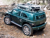 As executed in the Jeep Willys concept -- which won the Gold Award in the 2001 Industrial Design Excellence Competition sponsored by Business Week magazine and the Industrial Design Society of America -- Willys2 also was designed with an unsurpassed amount of imagination and adventure. The ultra-modern interpretation of trademark Jeep design cues, including the seven-slot grille and trapezoidal wheel arches, makes Willys2 stand out at any auto show. The vehicle is finished in Action Green metallic paint. 2 Yet with this newest concept, the Jeep brand continues to develop products reflecting true Jeep values. A combination of honest heritage and modern technology, Willys2 sports a high-tech machined appearance while still evocative of its World War II ancestor, the Willys MB, a vehicle that quickly earned a reputation as an American hero. Although a concept vehicle with no imminent production plans, Jeep Willys2 embraces its past while looking forward toward its global future. New Concept Vehicle Technology Willys2 also continues to lead the industry by using frame-web technology with a one-piece carbon fiber body on an aluminum frame. Found in today's top performance sports and military equipment, Willys2 has a lightweight aluminum frame and carbon fiber hardtop that is removable. The hard top comes equipped with a roof rack featuring a full-size spare tire holder and an integrated luggage carrier, as well as bindings for multiple kinds of outdoor gear. Three auxiliary fog and search lamps emphasize the 'go-anywhere do-anything' attitude that is characteristic of the Jeep brand. "We call it the pure American," said Trevor Creed, Senior Vice President of Design for the Chrysler Group. "The Jeep Willys2's usefulness and versatility were developed to exist in ecological harmony with nature, while being perfectly suited for the rigors of an active lifestyle." The Jeep Willys2, which weighs approximately 1350 kg (3,000 lb.), is powered by a 1.6-liter, in-line four-cylinder engine that has been supercharged to deliver 120 kW (160 bhp) and 210 Nm (155 lb.-ft.) of torque. Its four-speed automatic transmission is coupled with a shift-on-the-fly transfer case with full-time four-wheel drive and low-range modes. Estimated performance figures include a sprint to 100 km/h (62 mph.) in about 10 seconds and a top speed of almost 140 km/h (90 mph.) Willys2's chiseled design lends substance and visual weight, suggesting a low center of gravity with a long wheelbase (2413 mm/95 in.) and wide track (1496 mm/58.9 in. front, 1509 mm/59.4 in. rear.) It features a custom, independent short-and-long-arm front and multi-link solid rear axle suspension, with coil springs at all four wheels. (October 24, 2001) All pictures: Chrysler