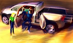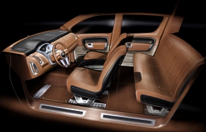The 2003 Chevrolet Cheyenne full-size pickup concept updates the cargo box area with features designed to appeal both to longtime truck owners and consumers considering their first truck. Features include dual bed-access doors, hidden storage bins beneath floor and sidewalls, and a dual-folding tailgate that opens fully for complete and quick access to the bed.
