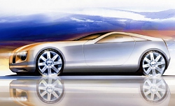 sloping bonnet, a tapered, drop-shaped cabin, and a short, muscular