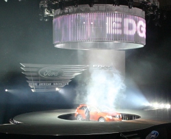 Most crossovers have been designed to closely resemble traditional SUVs. Edge heads to a new, unexplored part of the CUV market with a bold, modern, uniquely American design. Modern Design with a Dramatic Edge "Edge is not an off-road adventure vehicle, and it doesn’t look like one," says Peter Horbury, executive director, North America Design. "The inspiration for the Edge is contemporary design and an adventurous state of mind." Edge’s visual promise of dynamic prowess begins with its bold front end. Its distinctive three-bar chromed grille builds on the great look of the Ford Fusion. An aggressively raked windshield and fast-sloping back window with high-mounted rear spoiler accentuate the feeling of motion. Quad-beam headlamps and a "powerdome" hood accentuate the purposeful front-end look. Each wheel is planted at an extreme corner, giving Edge a powerful, yet graceful stance. The raised beltline emphasizes strong, sculpted shoulders formed around sharp wheel arches. Matte black lower front and rear fascias and side rocker panels emphasize Edge’s sporty character. Edge’s modern design flows into the interior, evident in the instrument panel and distinctive center stack. The center stack design incorporates two 9- by 2-inch vertical vents that bracket the audio and climate-control switches. All-leather seating surfaces feature contrasting stitching inspired by the fashion industry and a hit with Fusion customers. More than 41 models occupy the CUV segment today, but only three compete in a niche subsegment dominated by foreign competition. The 2007 Ford Edge crossover will be the only domestic product in this sub-segment later this year. Edge also is big on details. A 20-ounce-cup holder is included in each front-door map pocket, along with juice box holders in the rear door pockets, two super-size-cup holders in the center console and two in the rear armrest. Edge offers comfortable seating for five or can accommodate items up to 8 feet long with the rear seats and front passenger seat folded flat. The 60/40 reclining split second row folds to provide a level load floor for carrying equipment in the large cargo area. Edge can transport items as long as 8 feet inside with the front passenger seat folded down. Each rear seat can be folded manually using an industry-first single-hand release or automatically with an available EasyFold™ electro-mechanical remote release accessible from the rear cargo area. Edge’s available panoramic Vista Roof™ opens up a whole world of possibilities. The large glass moon roof provides a grand view of the sky above and can open for a sense of freedom that accentuates Edge’s sporting nature. The roof features a large 27.3- by 29.4-inch forward panel that offers tilt and slide opening, and a 15.75- by 31.3-inch fixed rear glass panel. A one-touch-open switch provides open-air touring. Close the forward roof, and the enormous skylights allow natural light to flood the cabin, while protecting the cabin from the elements. When preferred, the twin power-operated cloth shades can be closed simultaneously to block glare. Edge’s modern car-based foundation facilitates its excellent driving character. The front suspension features MacPherson struts and an isolated subframe, firmly attached in six locations. To further smooth out the ride, hydro-bushings are used. The four-link independent rear suspension uses stamped steel control blades for precise suspension tuning. The rear shocks are mounted as far outboard as possible in the vehicle and behind the wheel center to improve ride and handling. Edge comes standard with four-wheel-disc anti-lock brakes. Edge’s all-new 3.5-liter V-6 features a strong, lightweight, die-cast aluminum block and lightweight 4-valve-per-cylinder heads for smooth operation at high rpm. A 10.3:1 compression ratio and close-coupled catalysts will help it meet stringent ultra-low emission vehicle (ULEV) II regulations. The all-new 6-speed automatic transmission uses a wide 6.04:1 gear ratio to deliver good fuel economy and performance. Short first and second gears provide impressive launch and acceleration, while the tall overdrive gears deliver 7 percent better fuel economy than a 4-speed automatic. Edge’s available intelligent all-wheel-drive (AWD) system was tuned with an emphasis on performance while offering confident all-weather driving. By constantly monitoring and predicting traction, the system delivers torque to all four wheels, even before the wheels begin to slip. An active on-demand coupler can deliver the precise amount of torque to the rear wheels. Paired with available AdvanceTrac® traction control, intelligent AWD can transfer torque front-to-rear and side-to-side. Safety Begins with Accidents Avoided Edge customers will find peace of mind in Ford’s comprehensive approach to safety, including available active safety technology and comprehensive passive safety features. "Edge’s confident handling helps drivers avoid accidents, especially when paired with the industry-exclusive AdvanceTrac® with Roll Stability Control (RSC®)," says Stephen Kozak, Ford Safety chief engineer. "Should an accident occur, Edge features a comprehensive package of passive safety features to help provide enhanced safety performance." Ford Edge goes on sale in the fourth quarter of 2006. It will be manufactured at Ford’s Oakville Assembly Complex in Ontario, Canada. January 08, 2006