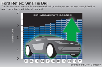 Reflex is set off with Ford's three-bar grille – made of high-strength anodized extruded aluminum, which is hand polished to a matte finish. The concept's shoulder line flows upward to the B-pillar and back down into the wheel arch. Reverse butterfly doors aid vehicle ingress and egress. The vehicle's low-voltage circuitry is exposed beneath the glass roof and rear hatch, giving a clever nod to accessible technology – even as a fashion statement. The roof also features self-powered solar fans that cool the car when parked. Reflex's aggressive 20-inch wheels are polished alloy. The large diameter, narrow width and unique Michelin tire design provide low-roll resistance for improved fuel economy. Kid-Inspired Interior Lightweight, space-efficient materials define the interior with its innovative 2+1 backseat configuration. Mesh seat covers are transparent and sheer, offering maximum airflow for comfort and style. Unexpected colors – red and robotic white – create a sense of warmth and accessibility. The interior of the Ford Reflex concept features lightweight inner seat frames wrapped in mesh. The white mesh fabric is offset with warm red carpeting. The cockpit comes alive with keyless activation. At the touch of a button, the instrument cluster controls appear in a cool blue hue as organic light-emitting diodes (LEDs) switch on. Located in the center console, touch-screen technology helps reduce driver distraction. Shift paddles that control the 6-speed semiautomatic transmission are tucked behind the steering wheel. The back seat offers the ultimate in small-car flexibility. A second-row "love seat" can accommodate two children or one adult. With a push of a button, a divider bar raises through the seat bottom, transforming one seat into two. Rear-seat passengers also have the luxury of watching their favorite movie on two small flat-screen monitors mounted to the lower portion of the front seatbacks. Like the front seats, the rear seats feature mesh wrapped around a lightweight inner frame. Advanced Safety in a Small Package Ford’s experimental inflatable safety belts provide a broader contact area with the potential to spread impact forces across the chest, further reducing the chances of injury. The small, tubular-shaped inflatable bag deploys inside the shoulder belt in the event of a crash. Reflex takes safety innovation a major step forward. Advanced safety technologies include inflatable safety belts and BeltMinder™ for backseat passengers. The inflatable safety belt helps reduce injury risk to second-row occupants. Ford's patented BeltMinder™ technology alerts the driver when second-row occupants are not buckled up. Understanding that the responsibilities of a parent don't end once the car starts, Reflex designers added a strategically placed "baby cam" in the headliner. From this vantage point, the driver can see streaming video images of the rear-seat occupants. Sporty and Green Reflex features an advanced diesel-electric hybrid propulsion system that harnesses diesel, electric and solar power. This combination of power can deliver maximum fuel economy – up to 65 mpg – without compromising performance. The concept features an electric motor on the rear axle in addition to the hybrid propulsion system on the front axle. The rear motor provides all-wheel-drive capability, improved driving dynamics and the fuel economy benefits of a full hybrid vehicle. The Ford Reflex concept features solar panels in the headlamps and taillamps that recharge the hybrid-electric battery pack, and solar panels in the roof that power electric fans to cool the interior while the vehicle is parked. Reflex's energy is stored in a new-generation lithium-ion battery pack, using the same technology found in cell phones. Ford was the first manufacturer to produce an electric vehicle using this type of battery system when it introduced the electric Ford Ka research vehicle in 2000. Also contributing to Reflex's power and performance are unique headlamps and taillamps that integrate solar panels. The Ford-patented battery-charging lighting system improves fuel economy by using the sun's power to charge the on-board batteries, while capturing and reusing the daylight at night. January 08, 2006
