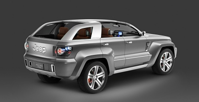 fronted by a signature seven-slot Jeep grille angled rearward to match