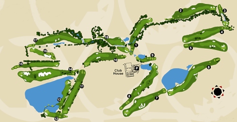 After getting refreshed '10 is just a good starter to the second nine. You have tp play your tee shot accurately between the two fairway bunkers in order to reach the heavy doglegged green with your second. Any shot too much to the left will bring you trouble. Pine trees to the left will interfere any second shot. The green is uphill and quite narrow. But it all depends on your first shot.