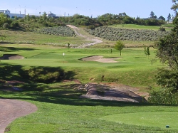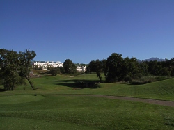 The 8 is a lovely par 5, narrow fairways and lots of bunkers. First shot is blind, which doesn't make it easier. The approach will be downhill and the green finally is doglegged left. All way down to the green you will enjoy the lovely views of the golf course and the Stellenbosch mountains.