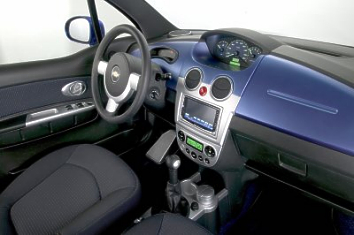 Photos: GM Despite its easy-to-park dimensions (just 3.5 m long and 1.5 m wide), the Matiz M3X feels surprisingly roomy inside. At 1.5 m, it stands taller than most mini-cars and the wheelbase of just under 2.35 m is also above average. This means that, due to the high seating position, the Matiz M3X can comfortably accommodate four adults. The study offers effective additional luggage accommodation with roof rails, which not only underline the car's sporty appearance, but also make it easy to attach any kind of carrier system. Even when fully loaded, the power plant of the Matiz M3X will provide excellent performance: The smooth and economical 1.0-litre four-cylinder engine generates 47 kW/64 hp at 5,400 rpm and is good for a top speed in excess of 150 km/h. (Sept 20, 2004)