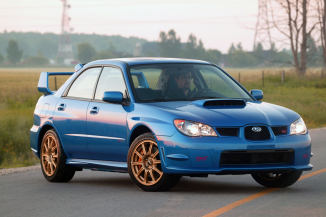 The 2006 WRX STI is also distinguished by the lower-profile hood scoop from the standard WRX to aid forward visibility. Daytime running lights (DRL) are added to the safety roster to make the WRX STI more visible to other drivers. A new roof vane spoiler, inspired by the Impreza World Rally Championship competition car, contributes to stability at track speeds and reinforces the car's high-performance attitude. The WRX STI received several significant chassis performance enhancements for 2005, including wider wheels. For 2006, the addition of a steering sensor input to the DCCD All-Wheel Drive system enhances power distribution response by more accurately relaying the car's cornering situation. The WRX STI is based on the Impreza WRX platform but is completely re- engineered to provide even higher levels of acceleration, handling and braking performance that challenge the world's best sports cars. In its first year, the WRX STI won Road & Track magazine's "Best Car 2004" Reader's Choice Award, edging out several dedicated sports cars, including the Porsche(R) 911(R) GT3. The Impreza WRX STI is powered by a turbocharged and intercooled 2.5-liter DOHC boxer engine producing 300 horsepower at 6,000 rpm and 300 lb-ft. of peak torque at 4,000 rpm. Teamed exclusively to a 6-speed manual transmission, the engine can propel the WRX STI from zero-to-60 mph in under five seconds. Power is transferred to all four wheels by a sophisticated Subaru Symmetrical All-Wheel Drive system with Driver Controlled Center Differential (DCCD) to optimize performance in all conditions. (July 21, 2005)