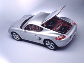 Offering a total of 410 litres or 14.35 cu ft luggage capacity, the Cayman S has everything it takes for all your leisure time enjoyment. Whether it's your diving equipment or a snowboard - virtually everything fits into the car, with up to 260 litres or 9.1 cu ft of luggage space beneath the large tailgate. Added to this large luggage compartment at the rear, there is the front luggage compartment offering another 150 litres or 5.25 cu ft, not to mention several large and, in part, lockable storage compartments for all kinds of smaller odds and ends. (Sept 23, 2005)