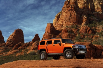 “Because HUMMER stands for more than just off-road performance, the H3 Alpha builds on the style and refinement of the H3 lineup and offers a unique, instantly recognizable statement on the road,” said Walsh. “In short, the H3 Alpha matches HUMMER’s off-road expectations with on-road attitude.” Alpha – the ultimate HUMMER HUMMER Alpha models represent the top in performance, capability and comfort. The H1 Alpha was the first of these ultimate HUMMERs, and like the H3 Alpha, it offered a more powerful engine as well as unique styling and comfort features. The H3 Alpha shares the same widely admired interior as all H3 models, including detail revisions and enhancements that have been implemented across the lineup. New child safety locks for the rear doors and easier-to-use power window switches were introduced during the ’07 model year and reflect customers’ input. The H3 Alpha’s 5.3L engine is a powerful and efficient member of GM’s legendary small-block V-8 family. It is rated at 295 horsepower (224 kW)* and 317 lb.-ft. of torque (438 Nm)*; and is similar to the small-block V-8 found in the Chevy Silverado, which was named the 2007 Truck of the Year at the North American International Auto Show. An aluminum cylinder block is used with the H3 Alpha’s engine. It helps reduce overall mass and maintains a more desirable front-to-rear weight balance. A Hydra-Matic 4L60 electronically controlled four-speed automatic transmission is paired with the H3 Alpha’s V-8 engine. And, as with all H3 models, flat-towing is enabled. HUMMER H3 and GM Performance Division engineers did more than simply shoehorn a V-8 engine into the H3’s engine compartment. Accommodating the new power plant necessitated the execution of a seemingly endless number of technical details – many of which have been implemented across the entire H3 lineup. The H3’s frame was modified to accept the V-8 engine, and a special oil pan was designed to ensure constant oil pressure when driving on steep grades – a hallmark of HUMMER’s off-road capability. Also, the engine compartment front of dash was modified to accommodate the V-8, and a new steering system is used on all H3 models to deliver better on-center feel and even more improved off-road reliability. To support the torque output of the powerful V-8, the H3 Alpha’s front differential case is made of cast iron; other models feature an aluminum case. New engine mounts, higher torsion bar rates to support the increased mass, and specific shock valving also are unique to the V-8-powered model, ensuring it continues to deliver the unparalleled ride quality – both on- and off-road – that customers expect. All H3 models pack HUMMER’s trademark capability into a midsize package. Compared to the H2, the H3 is 16.9 inches (429 mm) shorter in length, six inches (152 mm) shorter in height and 6.5 inches (165 mm) narrower. Roughly the same length as a midsize family sedan, H3 comfortably navigates city traffic and fits nicely in parking garages. The H3 lineup also delivers exceptional rock crawling and climbing performance; it was engineered for off-road leadership among midsize SUVs. The heart of this capability is its electronically controlled four-wheel-drive system and suspension tuning tailored for off-road performance. In addition, the H3 features standard underbody shielding, brake traction control, and an optional 4.03:1 transfer case with rear locking differential. Among its off-road credentials, the H3 can ford 24-inch (610 mm) streams at a 5-mph pace, climb 16-inch (407 mm) vertical steps and rocks, make its way through deep sand and race easily over sandy surfaces. H3’s more maneuverable size provides advantages, such as a 37-foot turning circle that is about the same as a typical compact car, making easy work of parking lot maneuvers and tight turns when off-roading. The 9.1-inch (231 mm) ground clearance and maximum breakover angle of 25 degrees (with 33-inch tires) both make it possible to clear large obstacles in off-road driving. Serious off-road performance is also aided by the maximum approach angle of 39 degrees and maximum departure angle of 37 degrees. These approach and departure angles permit the H3 to drive into a hole and back out again, without getting hung up in the front or rear. The H3 is sold in 34 countries, with production in the United States and South Africa . *Pending SAE certification. All Photos: Hummer (April 4, 2007)
