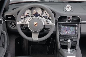The very wide chassis on the all-wheel-drive models makes both versions of the Porsche 911 Targa both comfortable and sporting all in one. Wheel arches flared on each side by 22 millimetres or 1.73” and accommodating rear wheels running on 295/35 ZR 18 tyres on the Targa 4 and 305/30 ZR 19 tyres on the Targa 4S give the car a definite sign of distinction. Individual suspension qualities – either conventional or active The Targa is available as before with the alternative choice of two suspensions. Based on the regular suspension of the 911, the new model comes with an active damping system optional on the Targa 4 and standard on the Targa 4S. PASM Porsche Active Suspension Management therefore offers the best of both worlds, combining a more comfort-oriented with an extremely sporting suspension set-up. Tyre pressure control system improved to an even higher standard Porsche’s improved tyre pressure control system (TPC) is also available as an option, permanently monitoring air pressure in each tyre. The big advantage of this new generation for the driver is that the information he needs is provided even more quickly and efficiently, current tyre pressure being shown in the instrument cluster within ten seconds after the driver switches on the ignition. New lights technology for extra safety and individual style The new models in the 911 Carrera range come as standard with bi-xenon headlights, with the further option of Dynamic Bending Lights available for the first time. Entering the market as new daytime driving lights, the front-end LED light bars stand out particularly through their individual, highly attractive graphics. The rear lights, finally, are now also energy-saving, long-lasting light-emitting diodes, with the exception of the back-up light at the rear. Seat comfort enhanced to an even higher standard New, optional seat ventilation offers extra comfort particularly on long distances and in hot weather. Operating in three stages, this new system features one fan in the seat itself and in the backrest. Convenient and highly versatile audio and communication system To improve the car’s ergonomics to an even higher standard, the new Targa comes with an even larger touchscreen replacing the former monitor featured by PCM Porsche Communication Management in the centre console. Halving the number of control knobs and buttons, PCM may be supplemented by further modules such as a navigation module with an integrated 40 GB hard disc, a telephone module complete with a Bluetooth® interface or the latest generation of voice control. And last but certainly not least, external audio sources may now also be masterminded straight from the PCM control unit via the optional USB and iPod® interface. Photos: Porsche (Sept 25, 2008)