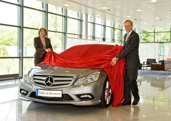 The new E-Class Coupé offers a very special combination of two attributes for which the Mercedes brand is known: fascination and efficiency. With its classic coupé side aspect – no B-pillars and fully retractable side windows – the new two-door car is a particularly sporty interpretation of the E-Class's dynamic design. At the same time the most aerodynamic variant of the Coupés achieves a new world best in terms of drag coefficient: with a Cd-figure of just 0.24, this model is the world's most aerodynamically efficient series-production car. The model programme includes two new 4-cylinder engines, which consume up to 17% less fuel whilst offering a significant increase in performance and torque. The best example is the E 250 CDI BlueEFFICIENCY Coupé which consumes 5.1 litres per 100 kilometres and, at 135 grams of CO2 per kilometre, is one of the most economical vehicles in its class. First GLK 220 CDI BlueEFFICIENCY supplied with new four-cylinder diesel engine For a few weeks, the Bremen customer centre has also been handing over to customers the GLK 220 CDI BlueEFFICIENCY featuring a new, highly economical four-cylinder diesel engine. This compact SUV is manufactured exclusively at the Mercedes-Benz plant in Bremen. (May 8, 2009)