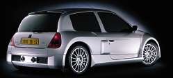 The project has thus benefitted from the expertise of two major players in motor sport. Strictly a two-seater, with its engine positioned mid-rear, with a design which evokes sportiness and a V6 3-litre 24-valve engine of 230bhp driving through a 6-speed gearbox, the Clio Renault Sport V6 is a unique vehicle. This extraordinary Clio, capable of accelerating from 0 to 100 km/h in 6.4 seconds, is aimed at a body of demanding and enthusiastic customers who are looking for a distinctive and powerful vehicle which combines driving pleasure with comfort. Its price has been set at FRF 240,000. The Clio Renault Sport V6 is a unique car of passion, unique, a member of the "exclusive" sporting models, the coupés, cabriolets and roadsters. This breed of cars with a strong personality notably includes the Audi TT 1.8T 20V Quattro, the BMW Z3 Coupé 2.7, the Mercedes SLK 230, the Porsche Boxter 2.7 and the Honda S2000. In 1999 these models achieved sales of 836 units in France and 18,732 in Europe. In the first 5 months of 2000, their sales had already topped these figures with 1,086 and 24,314 units in France and Europe respectively. The dynamism of this market niche is explained by the desire of an increasing number of drivers to travel "differently", at the wheel of fun cars with the emphasis on driving enjoyment. The product offer is following this tendency and is full of developments and novelties. Inspired by F1 Making a surprise appearance at the 1998 Mondial de l'Automobile, the Clio Renault Sport V6 was one of the stars of the Renault stand. Presented as a realistic study based on the Clio Renault Sport V6 Trophy, a model intended for circuit competition, this road-going version immediately attracted the attention of the media and of a wide public of enthusiasts and car admirers. Following the evident success of this model initiated by Renault Sport, Renault quickly began a development and manufacturing study. Entrusted to the TWR (Tom Walkinshaw Racing) company, based in England, this study confirmed the manufacturing feasibility of the project in accordance with a specification laid down by Renault, in terms of quality, safety, and the highest level of road-going behaviour and equipment. Renault's objective was to develop the Clio Renault Sport V6 and put it into production in an extremely short time (18 months). TWR, with its engineering abilities and its production facilities perfectly adapted to the manufacture of low-volume vehicles, responded totally to this need. The project depended on TWR's considerable data processing capacity for modelling (structure, cooling, deformation in the event of impact…) but also for visualisation, thanks to a virtual-image studio, and involved up to 100 experts including 60 engineers. Cars hand-built in the TWR workshops The manufacturing process follows this logistic arrangement: the Douvrin factory (Française de Mécanique PSA - Renault) supplies the engines, the Renault factories at Cléon and Flins respectively the gearboxes and the body in white with its hinged attachments. The Grand Couronne site collects and delivers those parts from the range which are not specific to the Clio Renault Sport V6. All the necessary bodywork modifications, and then final assembly, are carried out by hand on the TWR site at Uddevalla in Sweden by highly qualified technicians. This organisation ensures exemplary build quality. Each of the 12 cars produced each day is thus treated as a unique example. A strong design, evocative of dynamism and sportiness, an expression of driving enjoyment Renault's designers have given this car a unique style, expressing its philosophy: playful and powerful, but also civilised and accomplished. A thoroughbred, the Clio Renault Sport V6 asserts its sporting temperament and suggests driving enjoyment. Wider (+ 171 mm) and lower (- 66 mm) than a "standard" Clio, standing on 17-inch wheels at its extreme corners, the Clio Renault Sport V6 truly hugs the road. Borrowed from the world of competition, the design of these parts also contributes to the efficiency of the vehicle by improving aerodynamics and cooling. The wide front spoiler together with the discreet spoiler above the rear hatch increase downforce and therefore roadholding. The heavily perforated front bumper admits air to the radiator, while the widened front wings reflect the appearance of F1 side pods, with integral air intakes to ventilate the engine compartment. The left-hand intake is also connected to the induction system and assumes the role of dynamic air intake. Other sports-type features include the fuel filler cap, the twin round stainless steel exhaust pipes emerging from the centre of the rear bumper, the honeycomb grilles around the rear silencers, the front foglamps and the cooling air intakes in the front bumper. Luxurious interior treatment The cabin interior of the Clio Renault Sport V6 benefits from the same luxurious treatment as that of the Clio Renault Sport 2.0 16V, with a combination of leather and alcantara in blending shades of blue for the seat upholstery and interior trim. The driving position is also equipped with a leather-trimmed steering wheel with raised anti-slip finish, and the dashboard has the same white-faced dials found in the Clio Renault Sport 2.0 16V. The specially designed gear lever with its massive aluminium knob is provided with an extension to bring it closer to the steering wheel and position it better for sporting driving. The lever emerges from an aluminium console with the same circular design as the fuel filler cap. The pedals are specially designed for sporting driving and have aluminium plates with anti-slip inserts. The Clio Renault Sport V6 is provided with a 45-litre stowage space with retaining net between the backs of the seats and the engine compartment, as well as a 67-litre luggage compartment under the front bonnet panel. A unique layout, combining efficiency and safety The Clio Renault Sport V6 is provided with