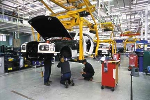 Twice a year, a complete body is built in the Body Assembly Hall only to be taken apart again. This is drastic testing, but on an everyday basis, one in five components is chisel-checked for structural efficiency. "There is a very healthy, competitive atmosphere in the bodyshop," says Team Leader Colin Morrey, who has been with the company since 1974. A look at the wallcharts which plot the progress of each team-member in terms of multi-tasking ability underlines this. There are some 13 teams, each containing ten to a dozen skilled and semi-skilled workers.