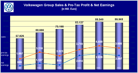 Volkswagen Group produced 5,161,188 cars and trucks in 2000. This was an overall increase of 6.2 % to 1999. See overall Volkswagen Group Statistics Volkswagen followed at all times an expansion course. See the Volkswagens Growth History Volkswagen`s Product Portefolio 2001