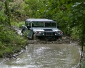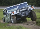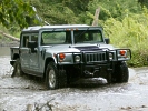 That interior roominess is actually enhanced for 2004, thanks to redesigned overhead and center consoles. “We looked at the interior design of the previous H1 and realized that we could repackage some elements to create a vehicle that feels even larger on the inside,” Albert explained. “For example, by using an integrated six-disc CD changer in place of the 12-disc changer, we were able to give the upper area of the center console a cleaner, sleeker look, while also providing a more integrated look for the glove box.” A quieter cabin Also improved for 2004 are H1’s interior noise levels, thanks to additional insulation and a refined powertrain. The result is a cabin environment that is perceptibly quieter to the human ear. More power and plenty of poise There’s also more power for 2004, thanks to a retuning of the 6.5L, turbo-diesel V-8 engine. As a result of the improvement, the 6500 now delivers 205 horsepower at 3400 rpm and an impressive 440 lb.-ft. of torque at 1800 rpm. That’s 10 horsepower and 10 lb.-ft. of torque more than the 2003 powerplant. Yet enhanced performance is only part of the engine’s story. The retuning also enables the 6500 to meet the more stringent emission requirements starting in 2004. It’s mated to GM’s Hydra-Matic 4L80-E electronically controlled four-speed automatic transmission. Over time, this transmission monitors the customer’s driving technique and adjusts for driving style. “Customers are always impressed at how nimble H1 is. It has a turning radius of just 26.5 feet. They are also pleasantly surprised at how manageable H1 is and how well it handles, both on and off road. Credit for this belongs to the four-wheel, fully independent suspension system and variable-rate heavy-duty coil springs,” said Bill Knapp, HUMMER program engineering manager. Providing sure stops are H1’s four-channel ABS four-wheel power disc brakes. To help prevent damage to these—especially during off-road excursions—the brakes are mounted inboard as a component of the axle assembly, rather than mounted to the wheel components. Four-wheel drive is standard on every H1 and features TorqTrac 4 technology, automatically reducing tire spin on severe terrain or slippery surfaces by applying the brake to the spinning wheel. An Off-Road Adventure Package is available and includes front and rear Eaton ELocker locking differentials for optimum slow-speed capability in climbing over large rocks or long, steep grades. For 2004, H1 continues to offer those features that make it a standout among SUVs, including a Central Tire Inflation System (CTIS) and a Runflat Tire System. CTIS enables H1 owners to adjust tire pressure on the move to adapt to varying terrain, while the Runflat Tire System enables drivers to continue driving on a deflated tire for up to 20 miles at 30 mph. Further adding to peace of mind while off road are H1’s low center of gravity, long wheelbase (130 inches) and nearly 72-inch track width. The result is a vehicle that is extremely stable—on and off road. It’s off road, however, that H1 really shines. That’s because the H1 was engineered to tackle the most difficult conditions—from blazing tropic heat to the most frigid arctic, and from the dry and dusty atmosphere of a desert to the muggy tropics. The secret behind HUMMER H1’s awesome capability is in its DNA. It was originally engineered to meet the rigorous demands of the U.S. armed forces that needed a vehicle with power, agility and durability like nothing in existence. Strip away some refinements and creature comforts, and the HUMMER H1 is still the “HUMVEE” trusted and respected by our military. Where does one start in describing H1’s off-road superiority? How about its 16-inch vertical ground clearance—almost double that of any other 4x4. Let’s not overlook H1’s dramatic approach and departure angles of 72 degrees and 37.5 degrees, respectively, or the 17-inch aluminum wheels shod with 37-inch tires. You may never encounter it, but there’s a degree of comfort in knowing this vehicle can ford a 30-inch deep body of water. “The powertrain refinement, the quieter cabin, as well as the luxurious new interior are a great example of what AM General and General Motors can accomplish together,” DiGiovanni said. “These are just the latest concrete examples of the benefits derived from maximizing the strengths of both companies.” HUMMER H1 is being offered in 4-door wagon and 4-door open top models for 2004. all photos: General Motors