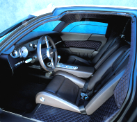 helicopter cockpit. Two leather-covered bucket seats accommodate the